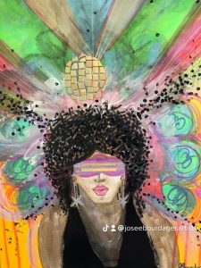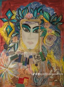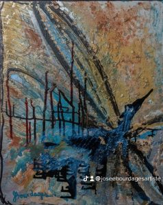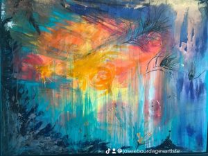 Née à Montréal en 1970, Josée Bourdages est une artiste humaniste autodidacte et multidisciplinaire pratiquant la thérapie par l’art depuis l’enfance. Encouragée par ses proches, elle a appris de façon intuitive à dessiner bien avant d’écrire. Stimulée par les couleurs vives, elle découvre rapidement l’univers des contrastes et des textures. Son imaginaire débordant lui permette une liberté d’expression unique en son genre. La reproduction ne fait pas partie de son cheminement repoussant constammment les limites de son imagination. Pour assurer son avenir professionnel et délaissant malgré elle l’idée d’étudier en arts plastiques, elle obtient avec fierté un Bachalauréat en administration des affaires à l’UQAM et poursuit un certificat en interventions dans les groupes et organisations de l’Université de Montréal, suivi d’une attestation d’études en psychologie sociale. Elle maîtrise sa pratique de conseillère en gestion des ressources humaines en se perfectionnant continuellement en tant que membre de l’Ordre professionnel des Conseillers en Ressources Humaines et Relations Industrielles. Entretemps, elle entretient son art durant ses temps libres en s’inscrivant à des cours en art plastique, dessin au fusain, théâtre, photographie, collage, argile, peinture à l’huile et techniques mixtes. Après avoir œuvré plus de 25 ans en développement organisationnel et prévention du harcèlement psychologique et sexuel en entreprise, elle a entreprit un changement de carrière radical en 2020 pour ainsi exprimer son art au quotidien. Cependant, le coaching de carrière auprès des artistes, art-thérapeutes et artisans demeure au cœur de ses interventions afin de les aider à découvrir leur plein potentiel et leadership créatif. Aujourd’hui ambassadrice du regroupement des ruches d’art et grâce à son parcours atypique, sa vocation est d’échanger avec le plus de créatifs du monde artistique.