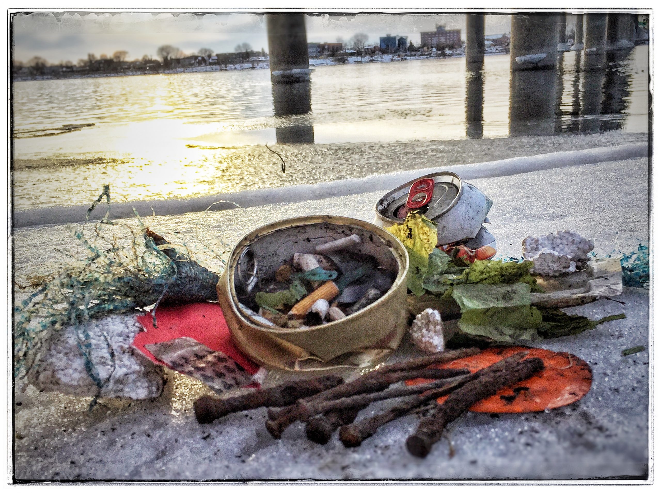 Idem pour le processus derrière mes photos. Le contenu de celles-ci est un assemblage de déchets ramassés sur le bord de la rivière et le résultat final est parfois assez unique!