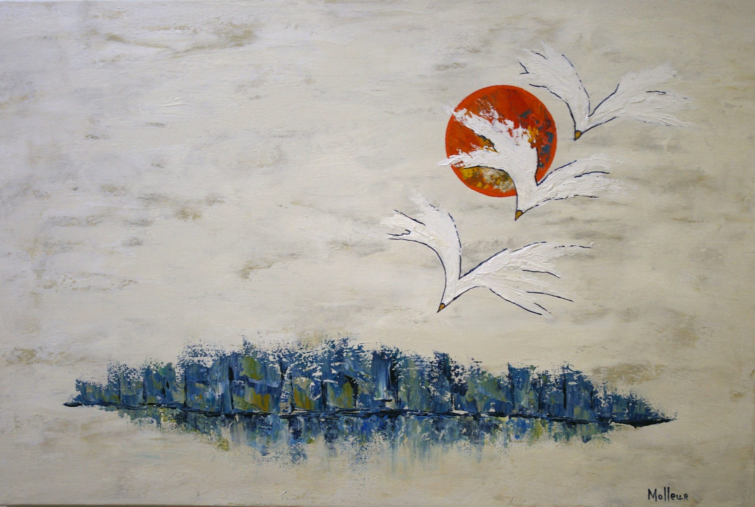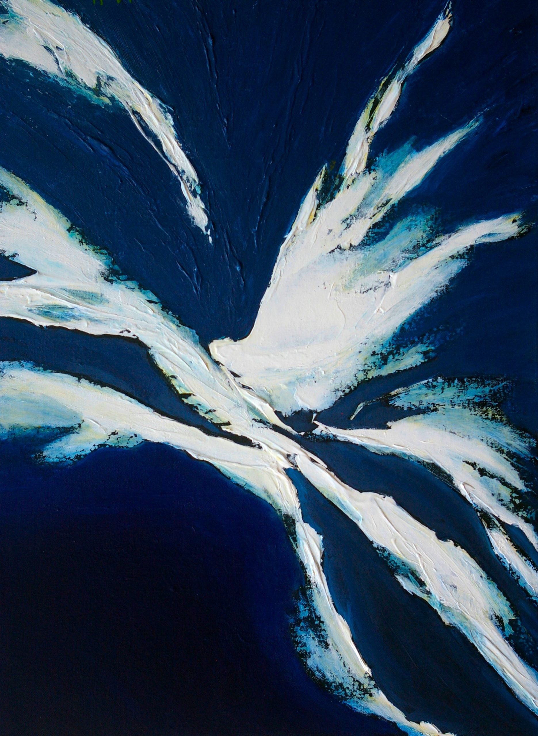 Je vous propose donc un voyage à travers la couleur dans un univers semi-figuratif et contemporain, soit la rencontre de la nature, de sa végétation et des différents bleus de l’eau.