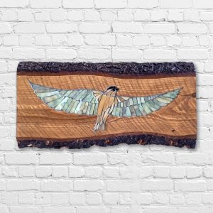 J’ai un autre volet artisanal unique. Je travaille avec quelques ébénistes pour fabriquer des meubles tels que des tables et des tabourets ainsi que des objets décoratifs à partir de fûts de chêne recyclés ou de planches de bois. Je produis les mosaïques en céramique faites à la main qui sont appliquées sur les pièces. Chaque œuvre est unique et fabriquée avec soin. L’utilisation de matériaux recyclés est importante pour moi ainsi que l’originalité de mes concepts. Le mariage bois et céramique rend mes œuvres très distinctes.
